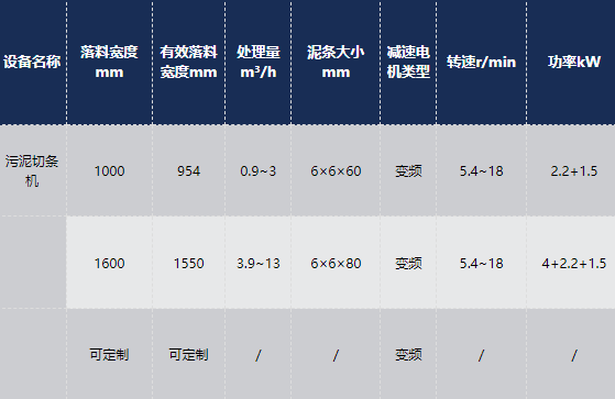 污泥切條為污泥烘干處置工藝中必不可少的一項工序,污泥切條成型,一方面增加污泥與空氣接觸的表面積,使污泥中的水分快速分離出來,提高污泥干化速度,降低能耗。另一方面厚度均勻且成型的泥條,不容易粘連堵塞烘干網帶,降低網帶的清理維護成本。污泥切條機為污泥處置生產線運作生產出了厚度均勻且成型的污泥條,實現了整個產線設備的節能,污泥脫水等目標。