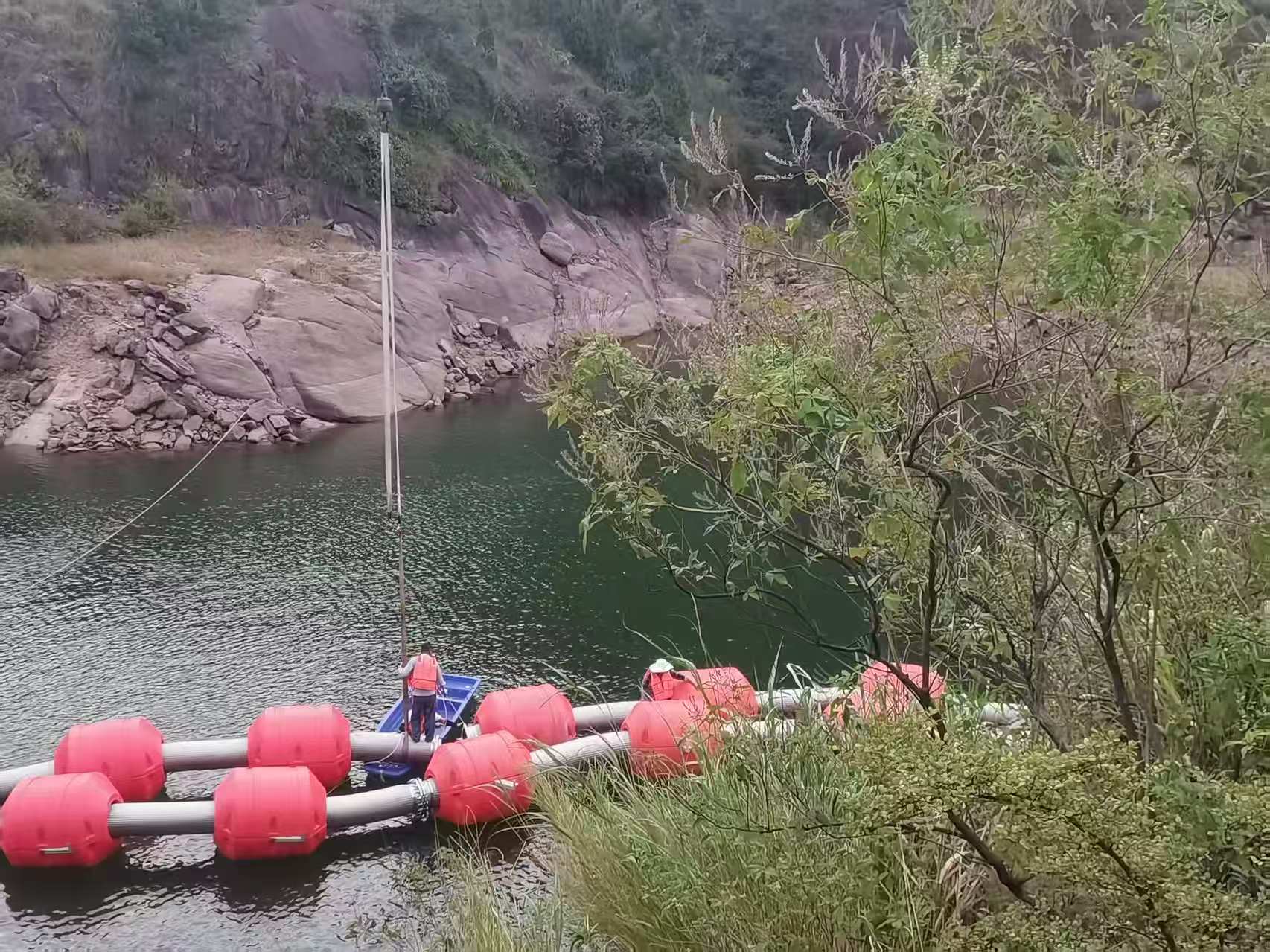 3. 浮管式:HDPE管或鋼管配浮筒漂浮水面,最長可達(dá)800米,適用于河床平緩、取水點遠(yuǎn)的水域。